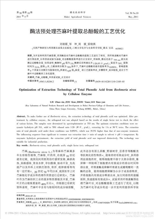 酶法预处理苎麻叶提取总酚酸的工艺优化