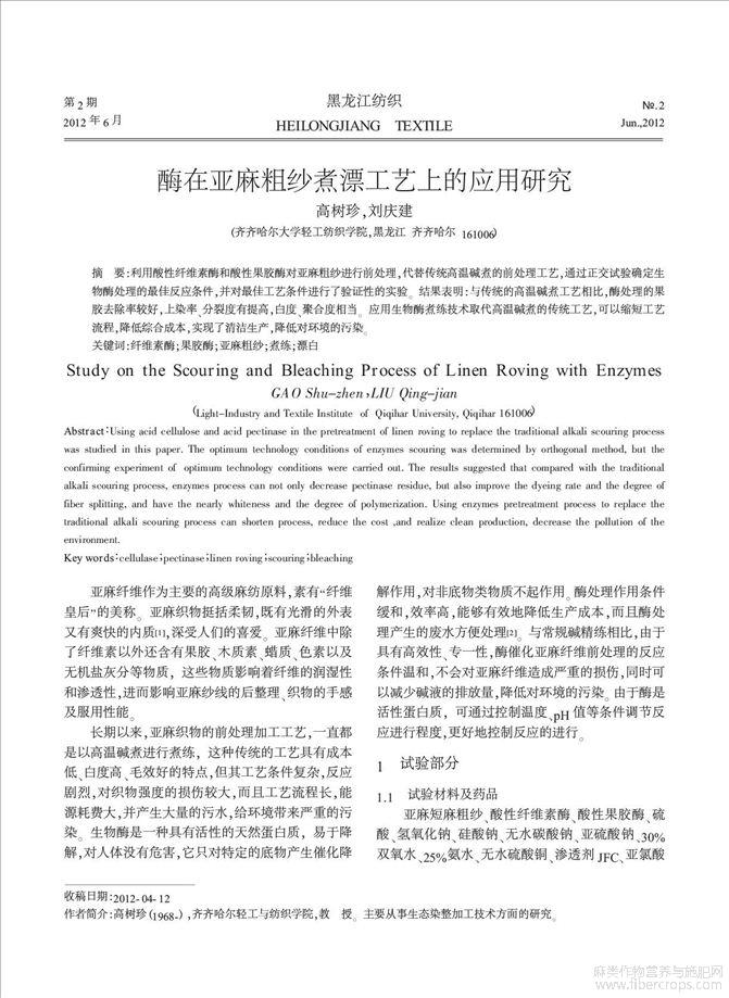 酶在亚麻粗纱煮漂工艺上的应用研究