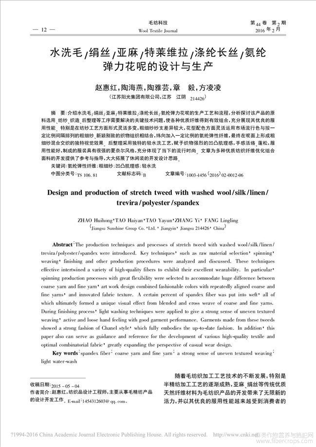水洗毛_绢丝_亚麻_特莱维拉_涤纶长丝_氨纶弹力花呢的设计与生产