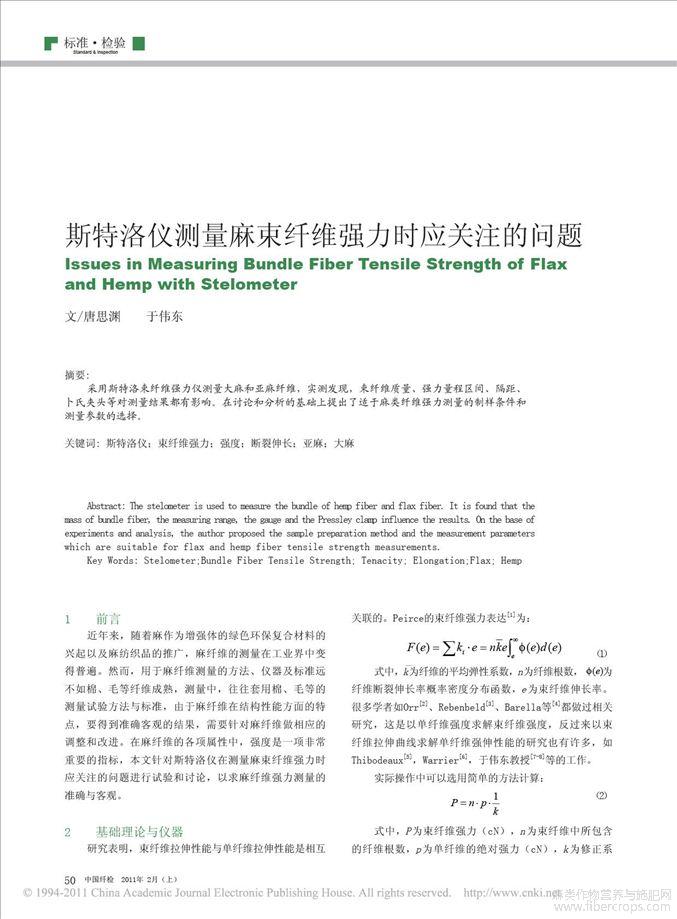 斯特洛仪测量麻束纤维强力时应关注的问题