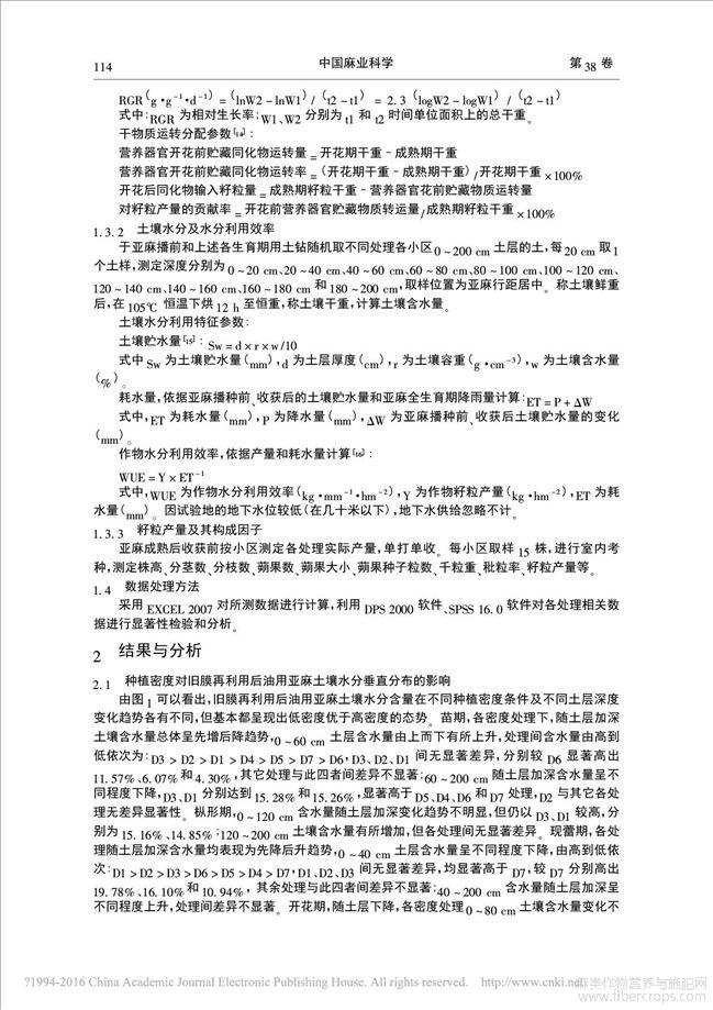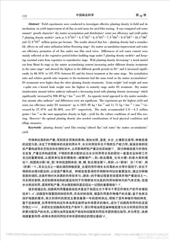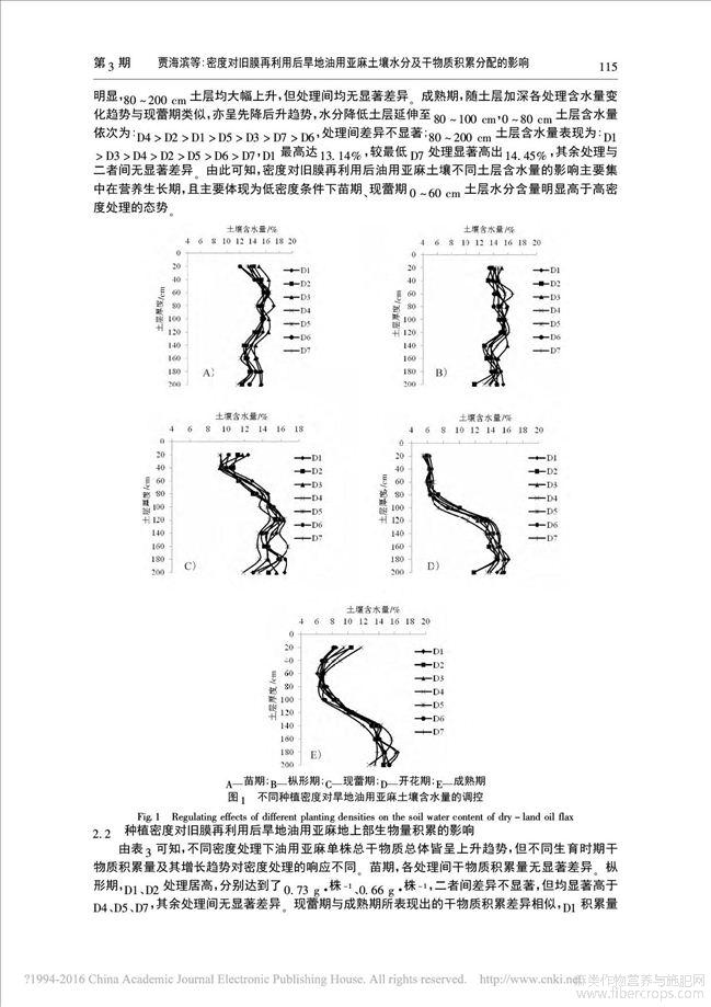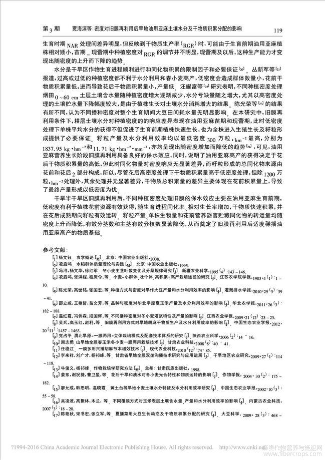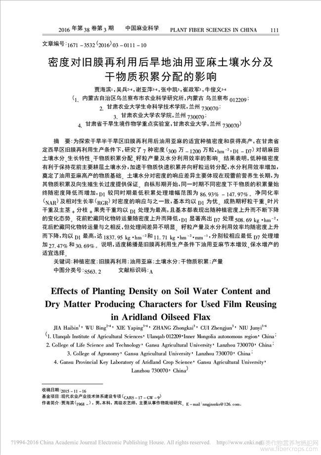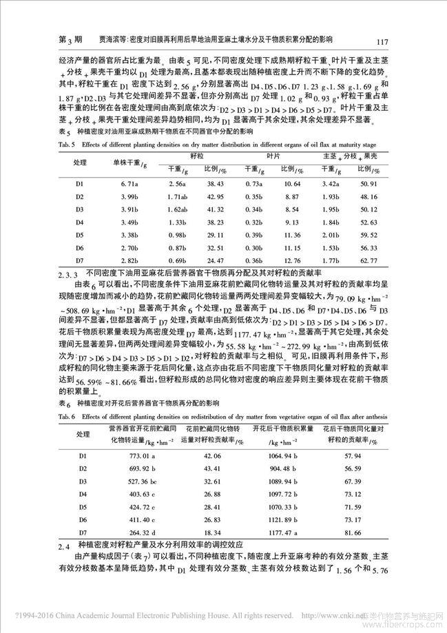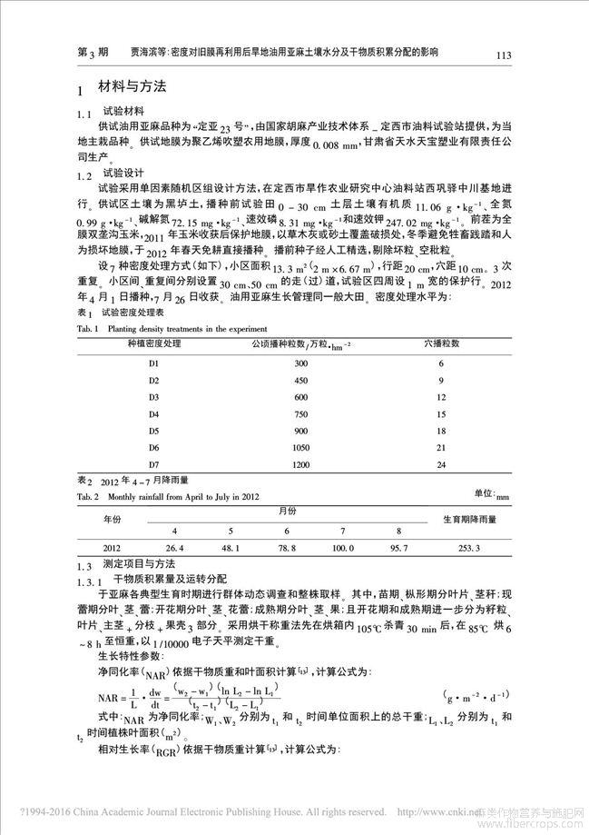 密度对旧膜再利用后旱地油用亚麻土壤水分及干物质积累分配的影响