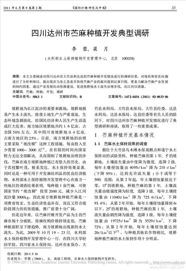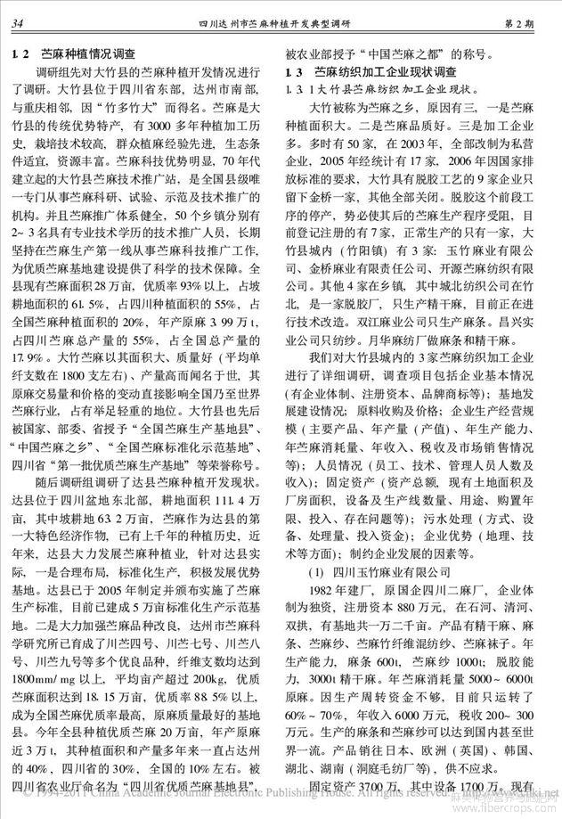 四川达州市苎麻种植开发典型调研