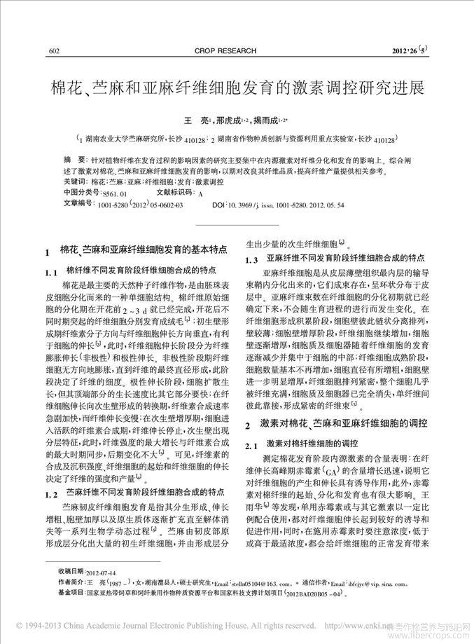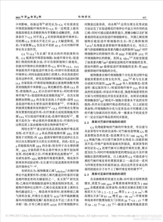 棉花_苎麻和亚麻纤维细胞发育的激素调控研究进展