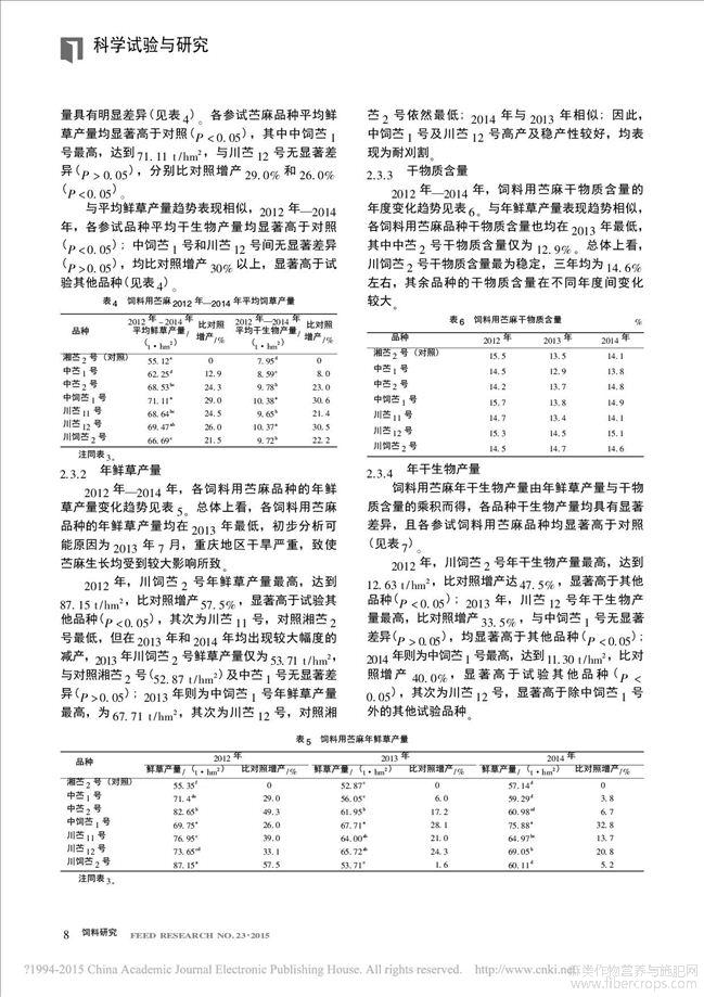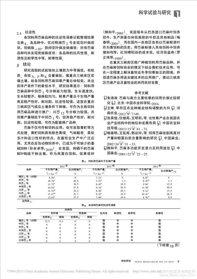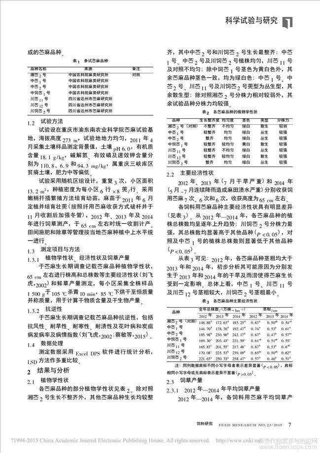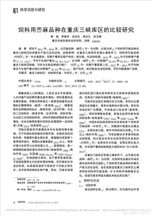 饲料用苎麻品种在重庆三峡库区的比较研究