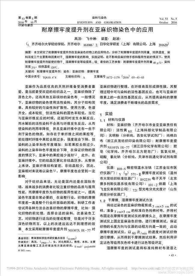 耐摩擦牢度提升剂在亚麻织物染色中的应用