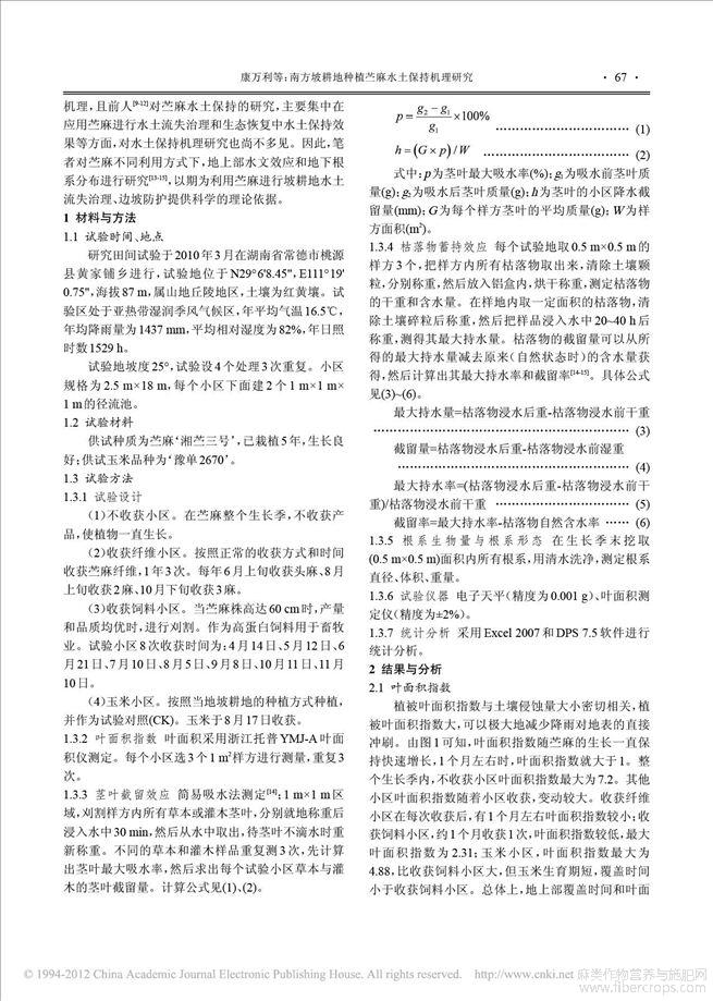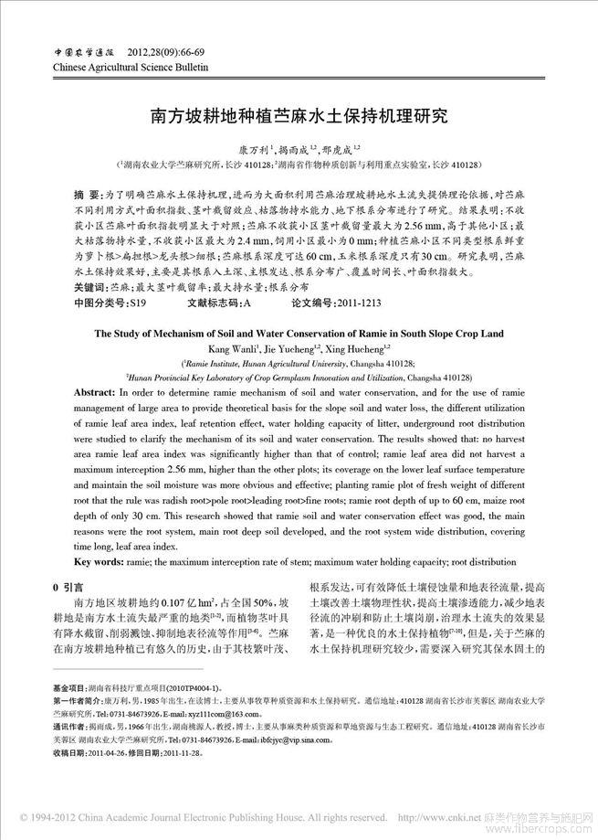 南方坡耕地种植苎麻水土保持效果和经济效益研究