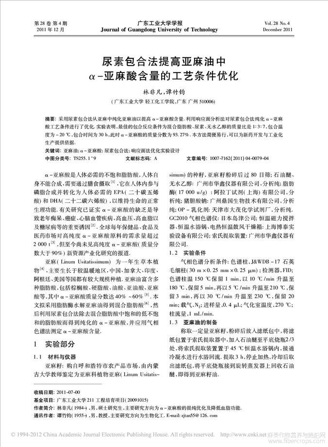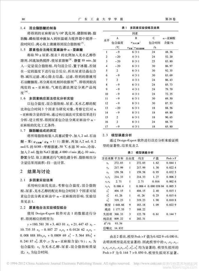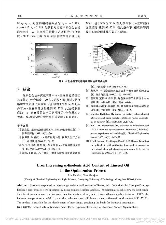 尿素包合法提高亚麻油中a_亚麻酸含量的工艺条件优化