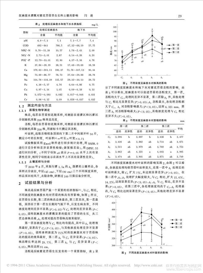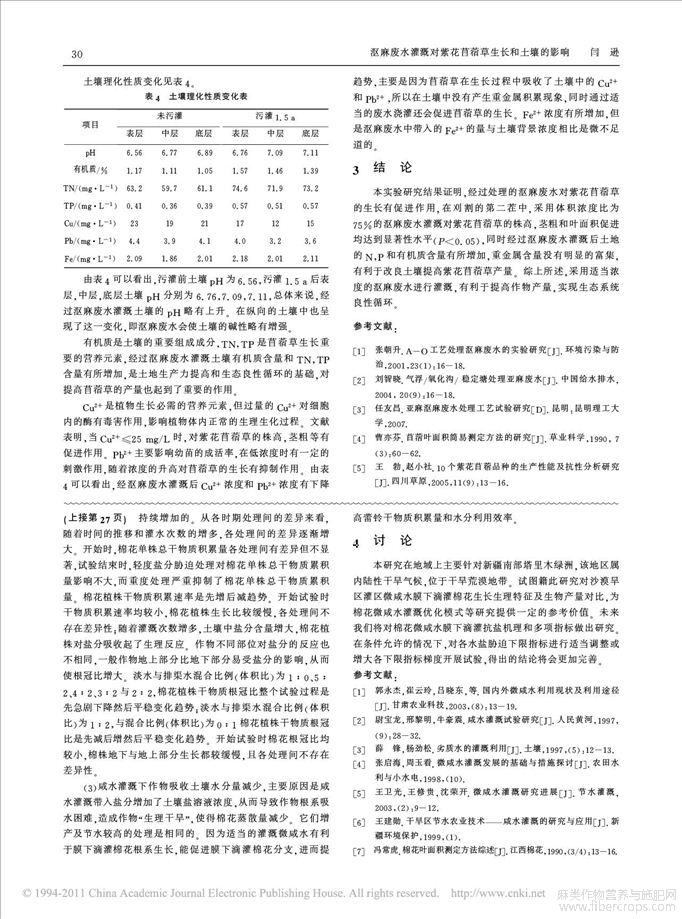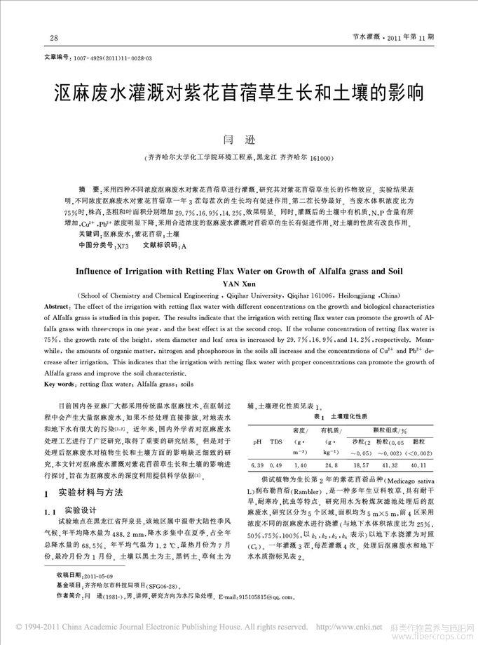 沤麻废水灌溉对紫花苜蓿草生长和土壤的影响
