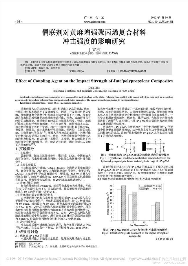 偶联剂对黄麻增强聚丙烯复合材料冲击强度的影响研究