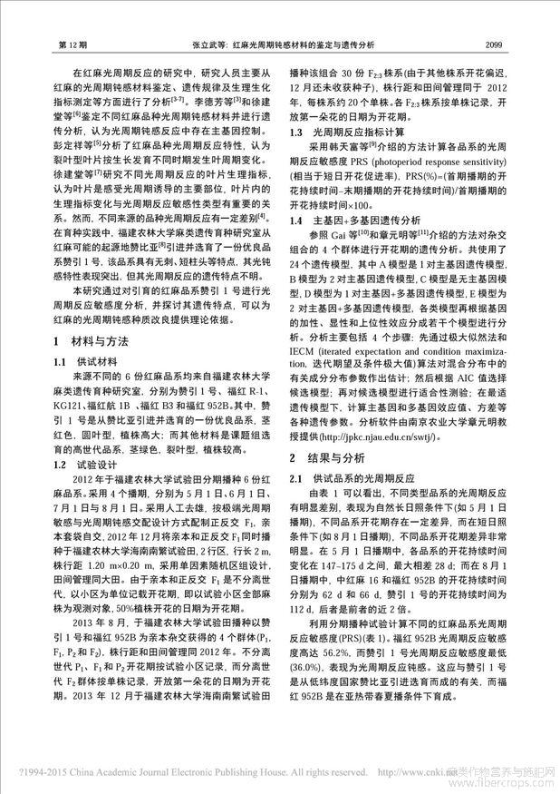 红麻光周期钝感材料的鉴定与遗传分析_张立武