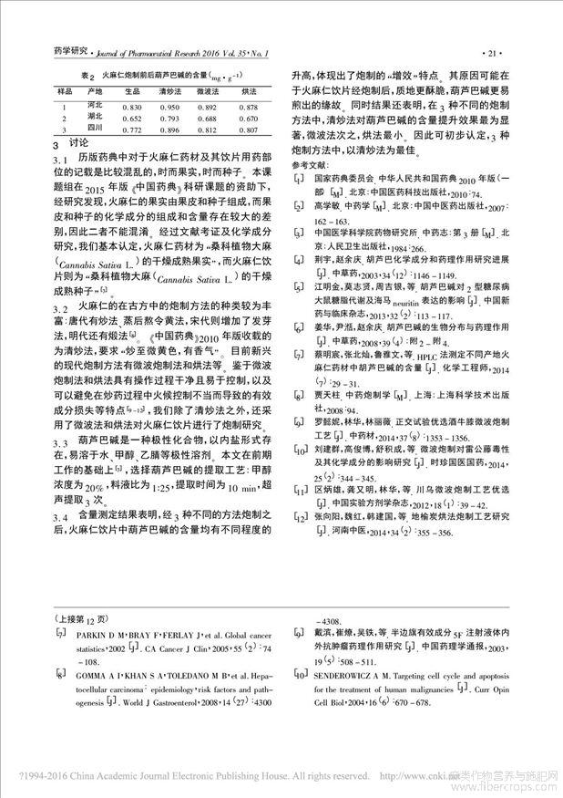 不同炮制方法对火麻仁饮片中葫芦巴碱含量的影响_朱夏敏