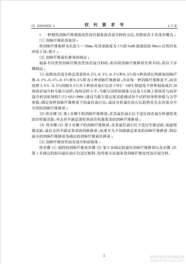 一种利用剑麻纤维增强改性沥青制备沥青混合料的方法(公开专利)