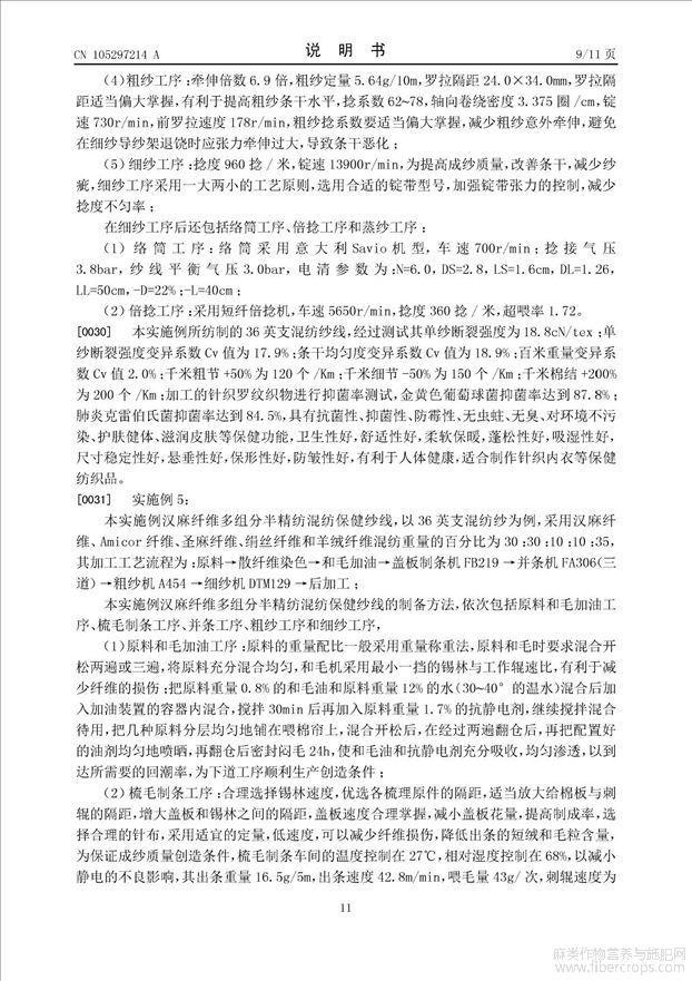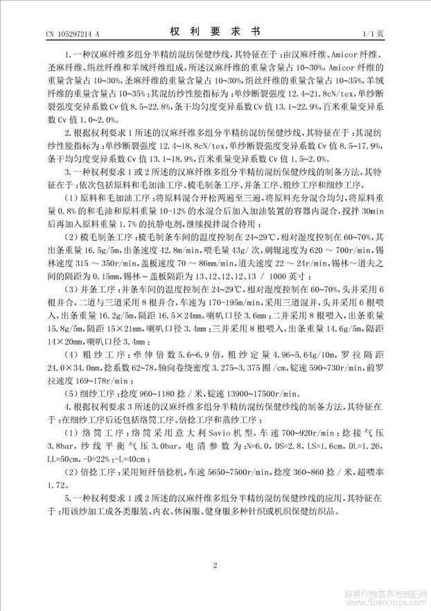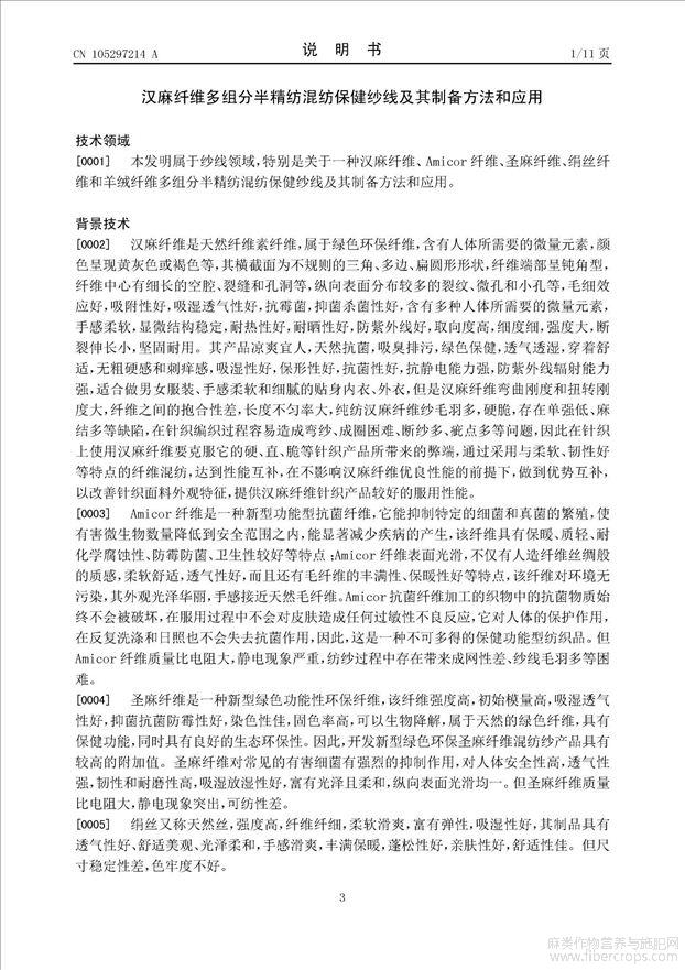 汉麻纤维多组分半精纺混纺保健纱线及其制备方法和应用(公开专利)
