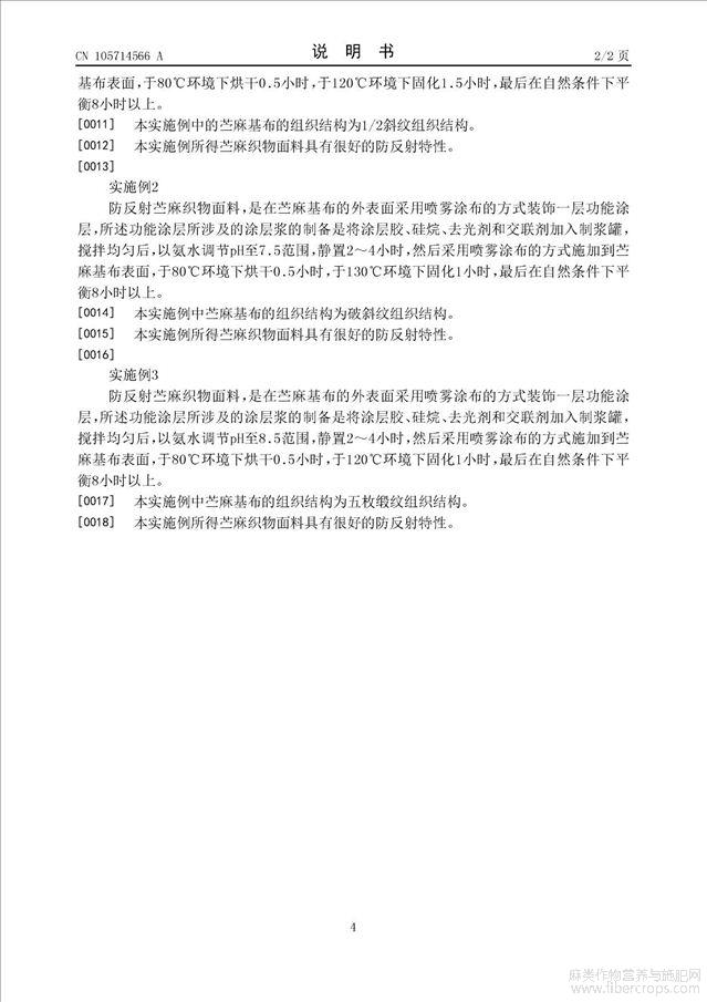 一种防反射的喷雾涂布式苎麻织物面料(公开专利)
