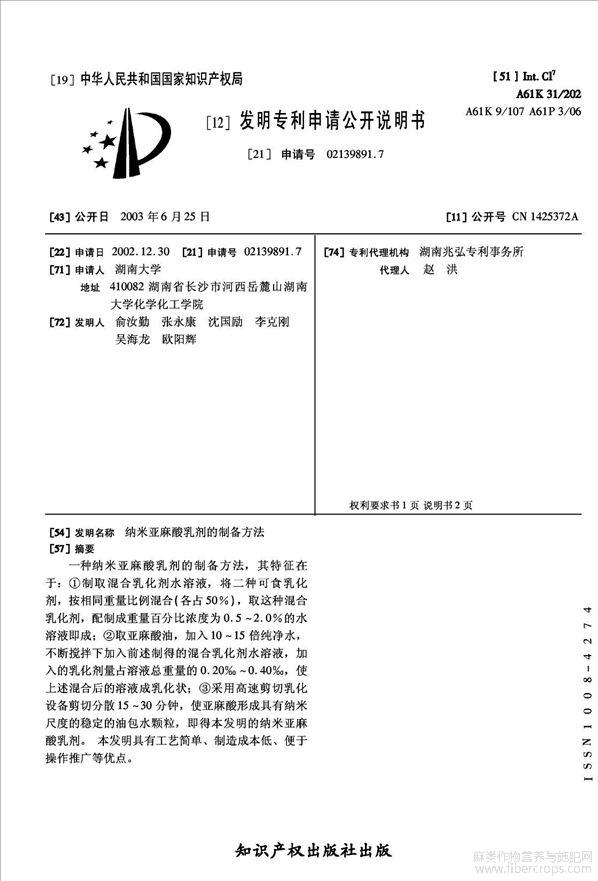 纳米亚麻酸乳剂的制备方法(公开专利)