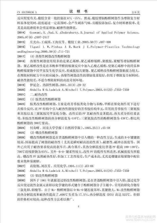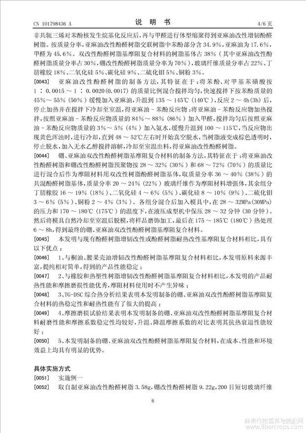 硼、亚麻油双改性酚醛树脂基摩阻复合材料及其制备方法(公开专利)