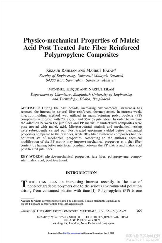 Physico-mechanical Properties of Maleic Acid Post Treated Jute Fiber Reinforced