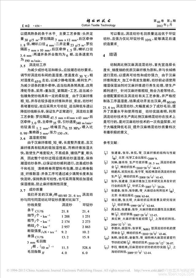 开发汉麻棉涡流纱的体会