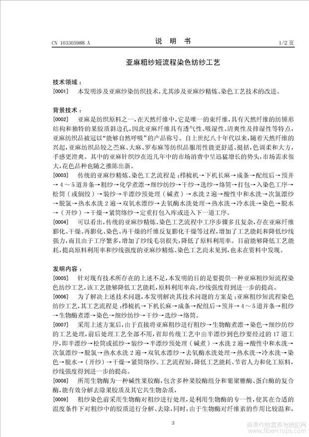 亚麻粗纱短流程染色纺纱工艺(公开专利)