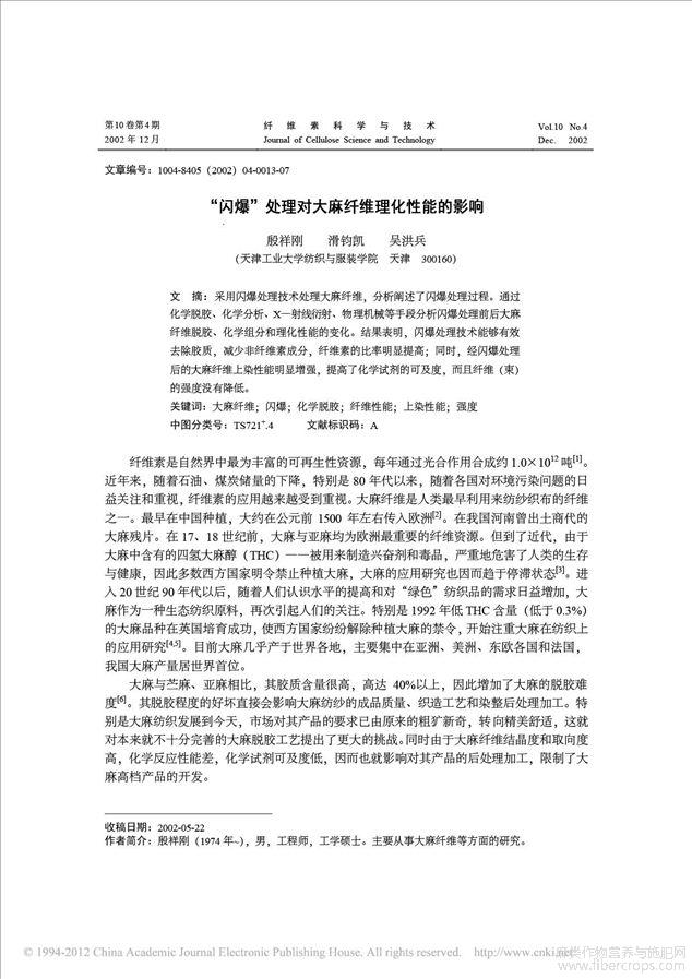 “闪爆”处理对大麻纤维理化性能的影响