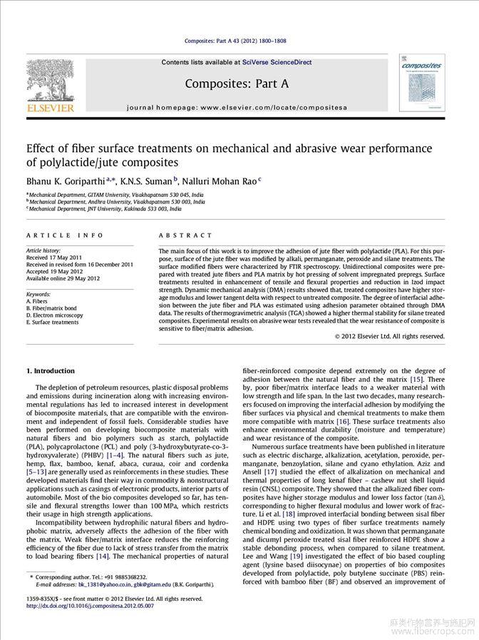Effect of fiber surface treatments on mechanical and abrasive wear performance o