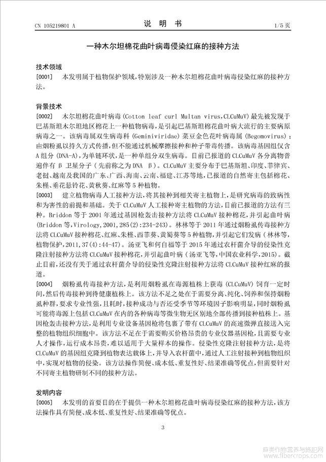 一种木尔坦棉花曲叶病毒侵染红麻的接种方法(公开专利)