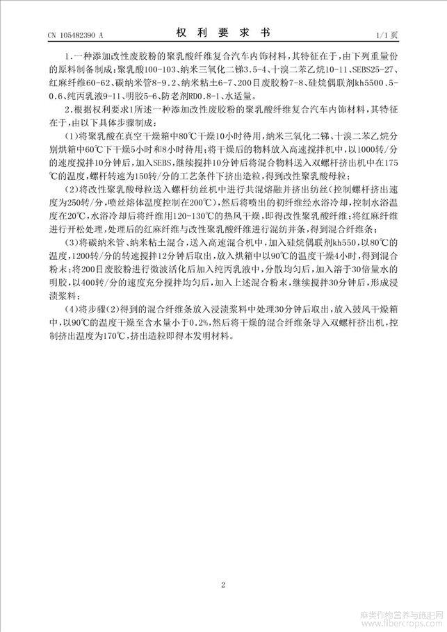一种添加改性废胶粉的聚乳酸纤维复合汽车内饰材料及其制备方法(公开专利)
