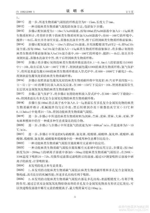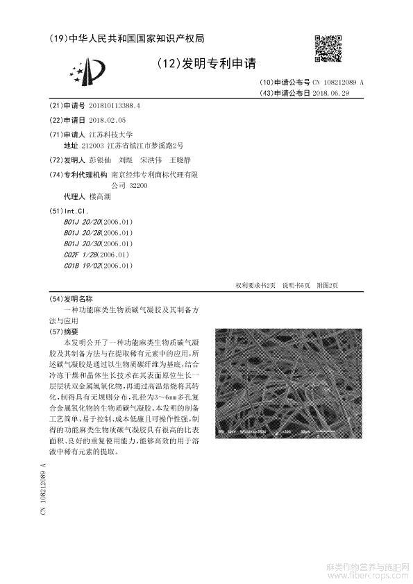 一种功能麻类生物质碳气凝胶及其制备方法与应用
