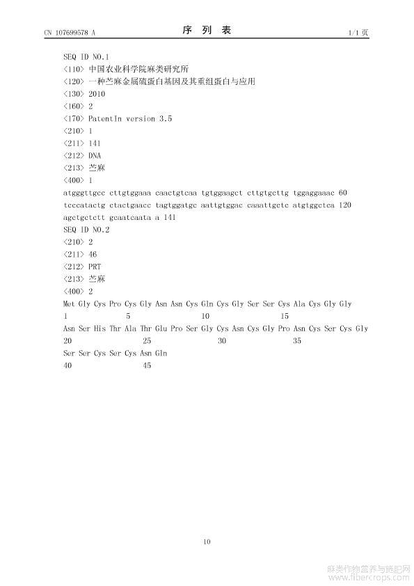 一种苎麻金属硫蛋白基因及其重组蛋白与应用