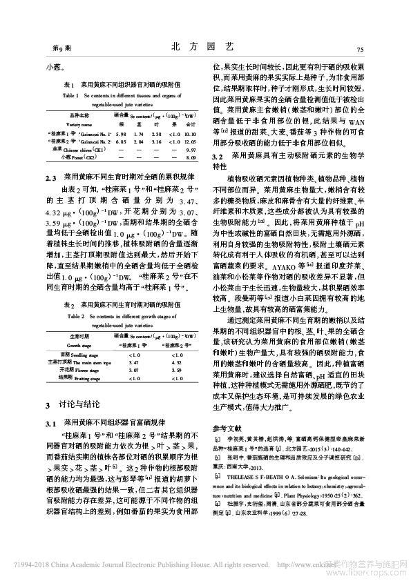 菜用黄麻对硒的累积规律_赵艳红