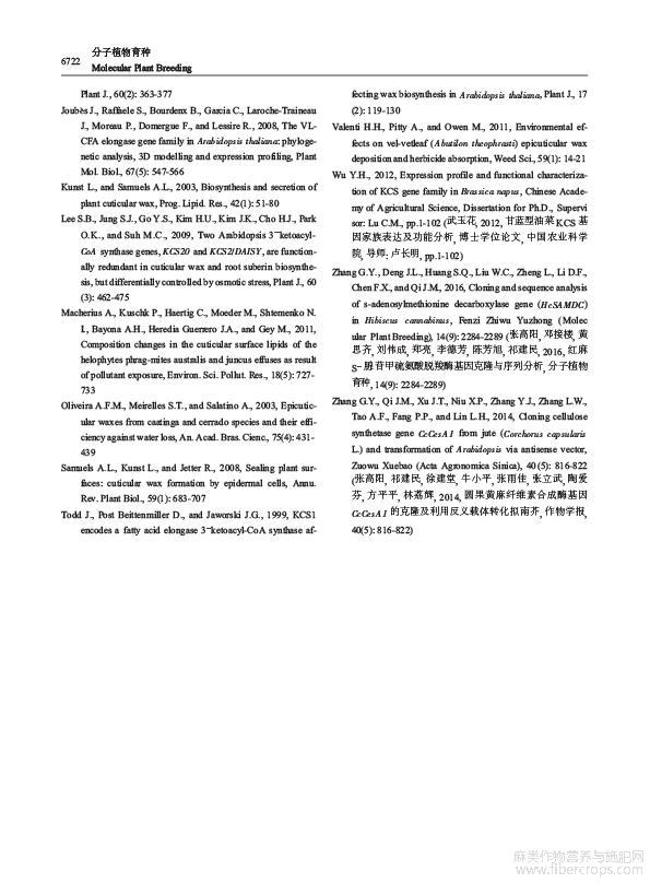 黄麻β-酮脂酰-CoA合酶(KCS)基因分离与功能鉴定_张高阳