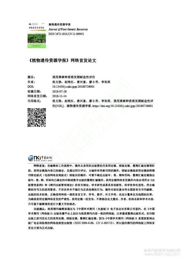 菜用黄麻种质萌发期耐盐性评价_侯文焕