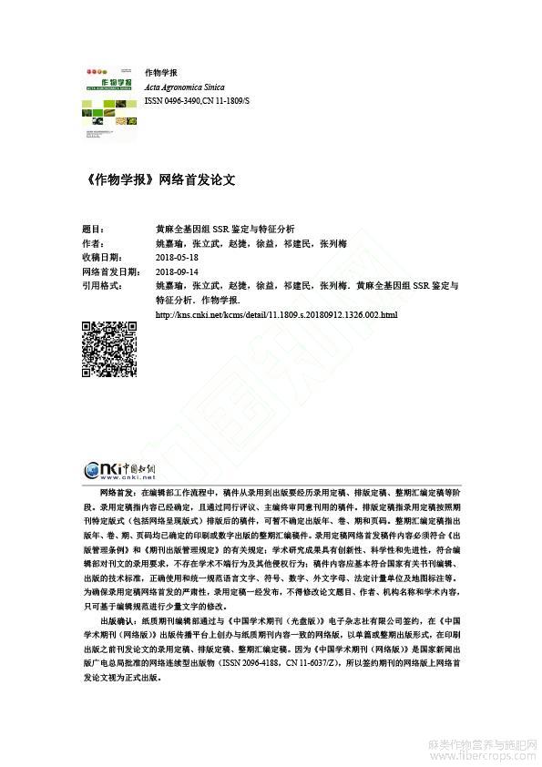 黄麻全基因组SSR鉴定与特征分析_姚嘉瑜