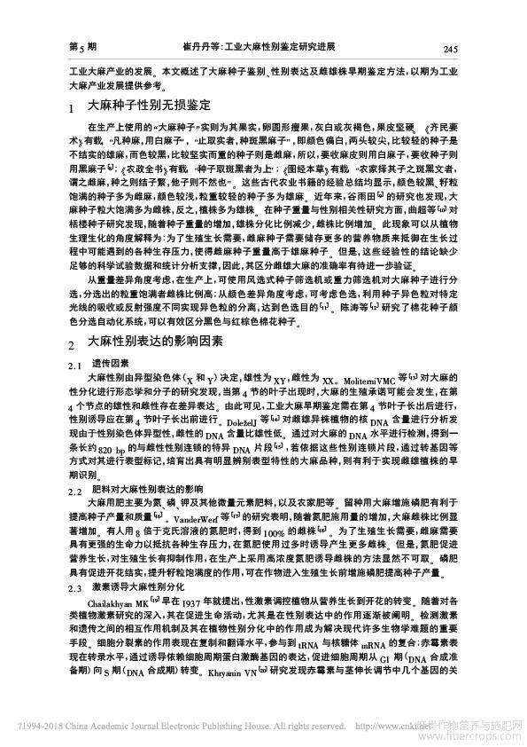 工业大麻性别鉴定研究进展_崔丹丹