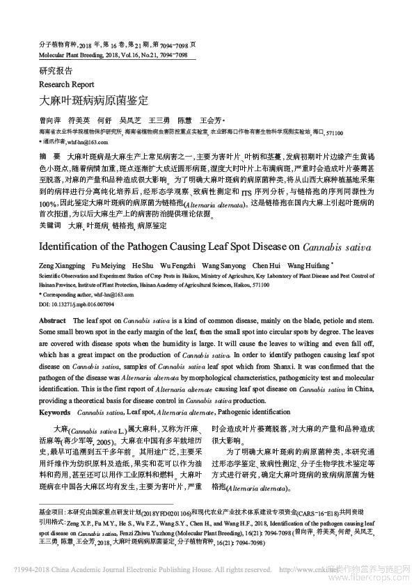 大麻叶斑病病原菌鉴定_曾向萍