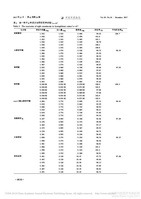 基于UPLC的独一味中8种成分测定及其含量影响因素初步研究_苟燕梅