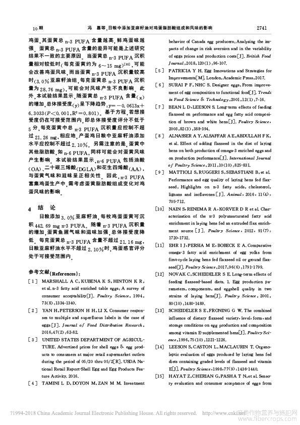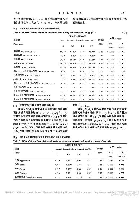 日粮中添加亚麻籽油对鸡蛋脂肪酸组成和风味的影响