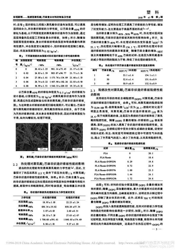 阻燃型聚乳酸/苎麻复合材料的制备及性能