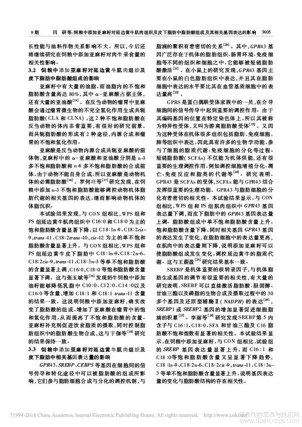 饲粮中添加亚麻籽对延边黄牛肌肉组织及皮下脂肪中脂肪酸组成及其相关基因表达的影响