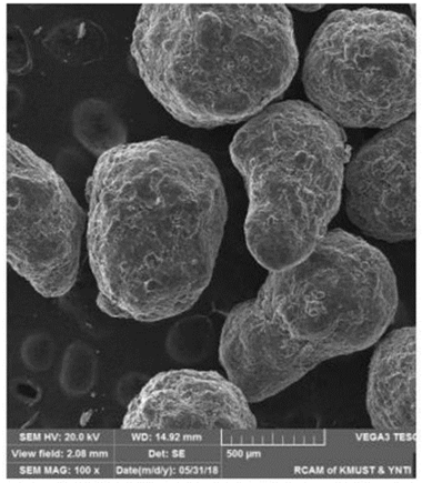 图4为本发明颗粒状烟芯材料100倍电镜扫描图;