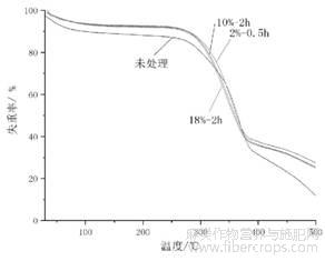 测试方法:采用TGA-50热失重分析仪,对黄麻纤维处理前后的热稳定性进行分析。
