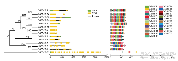 2.4 LuPLA1家族基因结构与蛋白质Motif分析