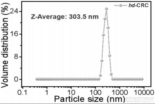 由图5可知,该材料拥有均匀的颗粒大小,平均尺寸为303 .5nm,可以很好的避免颗粒间的团聚。