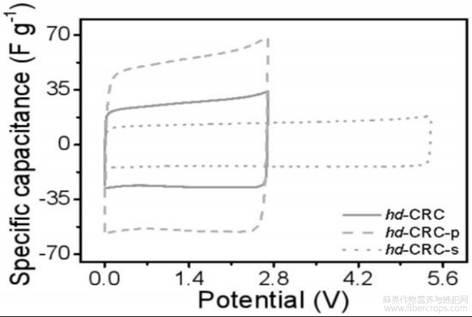 由图3可知,本发明制备的生物质导电碳有更大的吸附量,可以电解质离子的存储。