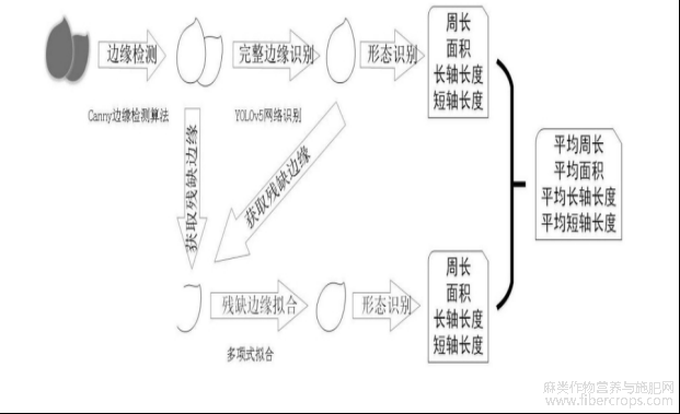 用于使用目标识别算法获得整体边缘图像中形态完整的胡麻籽粒边缘图像,包括:构建YOLOv5s网络,使用公开数据集对YOLOv5s网络进行训练,获得训练完的YOLOv5s网络;使用少量形态完整的胡麻籽粒边缘图像构建数据集,使用该数据集对训练完的YOLOv5s网络进行微调,获得用于识别形态完整的胡麻籽粒的YOLOv5s网络,使用该YOLOv5s网络对整体边缘图像中形态完整的胡麻籽粒边缘进行识别;