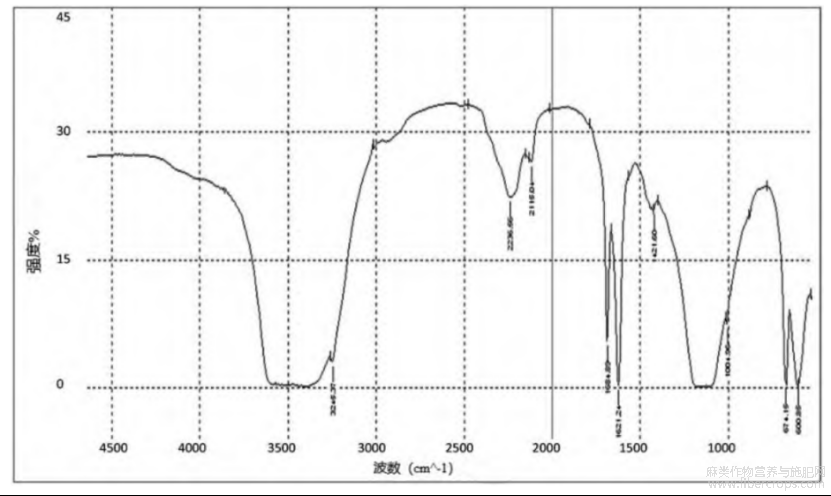 黄麻-石膏复合材料样品的光谱如图3所示。由于水分子被吸收后的拉伸和振动,在3245cm-1处出现了一个宽带[5]。由于复合材料中分子间存在弱氢键,所以峰宽大于峰尖。这意味着在纤维束和石膏晶体的水分子之间形成了氢键。但是这种结合的性质使得它对于材料的力学性能的任何改善都是微不足道的。SO42-的存在也被它们的特征波段检测到。600cm-1和674cm-1处的峰是由弯曲振动引起的,而1004cm-1处的峰是由硫酸盐基团的拉伸振动引起的。波数为2115cm-1和2236cm-1的频带由于水的弯曲振动而出现新的频带,这可能是由于纤维束与基体之间形成氢键而产生的。因此,以上讨论表明结构中存在黄麻和石膏,但未发现除氢键外的新的化学键,同时也未发现任何物质的化学结构有明显变化。在纤维束和石膏中的水分子之间形成了氢键。事实上,这部分并没有什么新意,因为整个结构主要依靠机械键合而不是化学键合,这在之前的结果中已经很明显了。