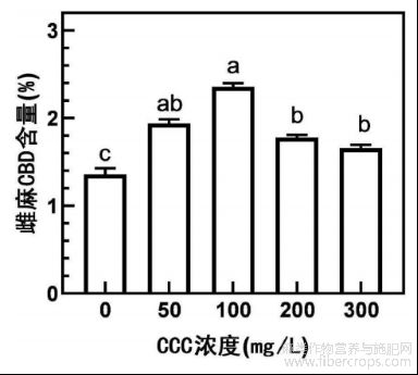 图6为喷施不同浓度矮壮素对工业大麻雌株CBD含量的影响图;