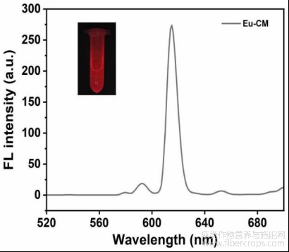 图5为荧光微球的荧光光谱图及紫外手电照射下的图片;