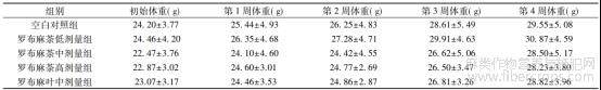表1 罗布麻茶?罗布麻叶对小鼠体重的影响(±s)