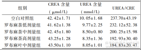 表3 罗布麻茶对小鼠肾相关血液生化指标的影响(±s)